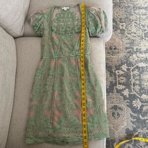For Love & Lemons Temecula Puff Sleeve Mini Dress in Moss Green