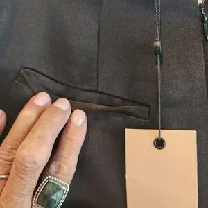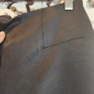 FIT: designed for a high-waisted, wide-leg silhouette. Pant is accessed through zipper and hook and eye closure at centre back. Fabric offers no stretch to the fit.