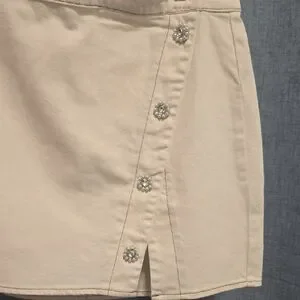Gianni Bini Cream Mini Skirt with Pearl Button Accents Size XL NWT