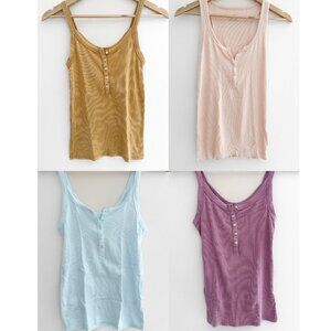BUNDLE OF 4 - Aerie Tank Tops - Soft Ribbed Henley Button Racerback - Size S