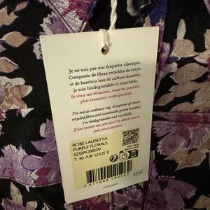 New with tags Sezane Lauretta Dress in Purple Flowers print, US women’s size 8, UK size 12. Originally $210.