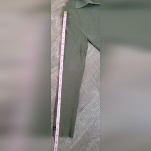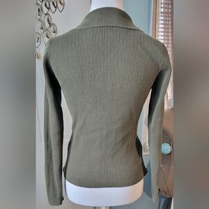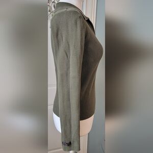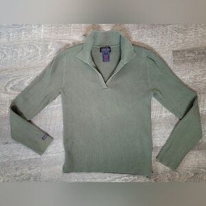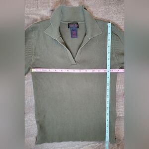 Ralph Ralph Lauren 90s Y2K Vintage Ribbed Babydoll Long-sleeved Top Womens S Olive Collard V Neck 100% Cotton