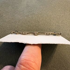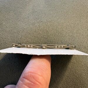 Vintage Art Deco Diamond Bar Rhinestone Sterling Silver Brooch Lapel Pin
