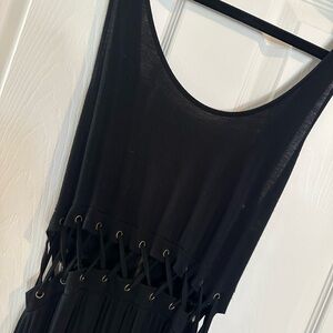 This elegant black sleeveless dress is perfect for any occasion. Its sleek design offers a flattering fit, making it a versatile addition to your wardrobe. High/low