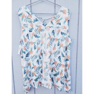 Style & Co. Womens Tank Pineapple Toss Shark Bite Hem Plus 2X New
