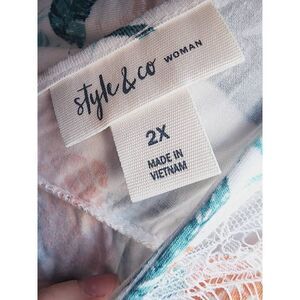Style & Co. Womens Blouse White Novelty Sleeveless Tie Neck Lace Plus 2X New