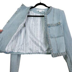 Veronica Beard Arrowe Braided Denim Chambray Light Blue Cropped Jacket Size 2