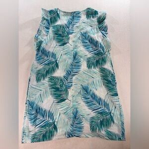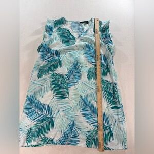 Tahari 100% Linen Tropical Palm Print Shift Dress Womens XL Resort Summer Beach