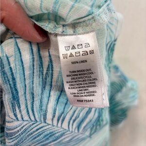 Stay cool and effortlessly stylish in this Tahari 100% linen tropical shift dress. Featuring a breezy palm leaf print in calming aqua and green tones, this lightweight dress is perfect for warm weather and vacation vibes.