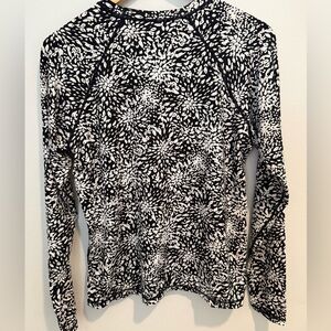 Hurley Long Sleeve Rash Guard Swim Top XL Black White Floral UPF 50+ Surf Beach