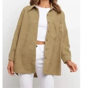 Petal & Pup Green Corduroy Ribbed Button Down Shirt Shacket Size Small