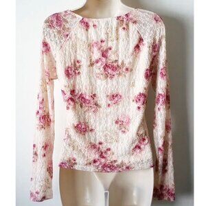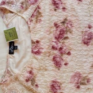 NWT Self Esteem Stretch Lace Long Sleeve Top L Lined Dusty Floral - 50off3