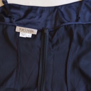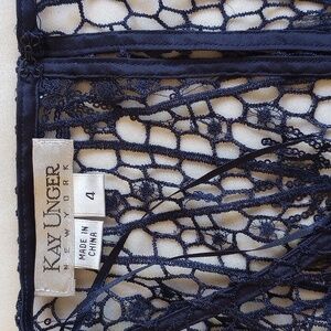 Kay Unger Sequined Lace Cap Sleeve Flounce Dress With Satin Slip 4 Navy