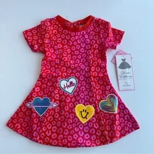 Rare Editions Toddler Girls Leopard Print Patches Dress Pink/Red NWT NEW
