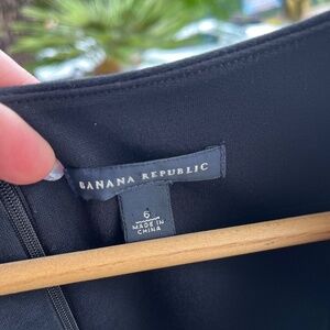 Classic Banana Republic black dress featuring a structured neckline, soft drape, and flattering tailored silhouette. Perfect for work, events, or an easy polished everyday look.