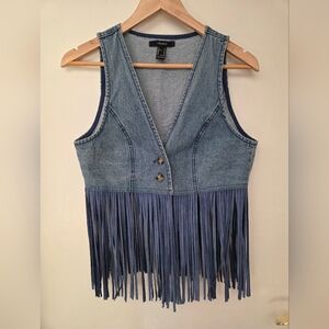Forever 21 Denim Fringe Vest Boho Western Sleeveless Button Front Size M