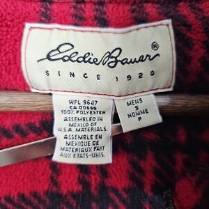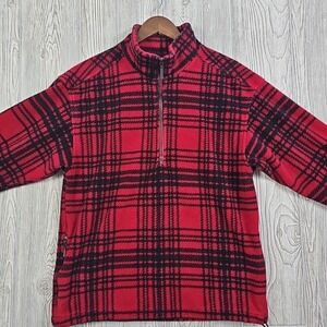🎄 Eddie Bauer Red Plaid 1/4 Quarter Zip Fleece Pullover Polartec Holiday Cozy