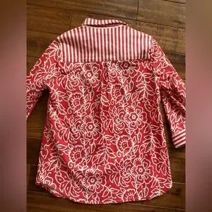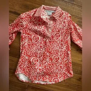 Gretchen Scott Designs Orange and White Floral and Striped Pattern Shirt, Med
