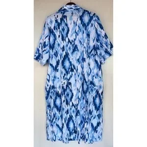 NOTTIBIANCHE Linen Shirt Dress Caftan Midi Maxi Button Lagenlook Blue Ikat 1X