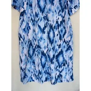 NOTTIBIANCHE Linen Shirt Dress Midi Maxi Button Front Woman Blue White Ikat Linen Blend Button Front Shirt Dress Plus Size 1X Patio Dress Loose Shift