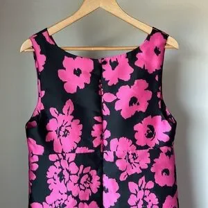 Milly dress, size 14 cocktail dress, floral sheath dress, pink and black dress, sleeveless party dress, women’s formal dress, wedding guest dress, evening dress, designer dress, spring event dress, summer cocktail dress, special occasion dress