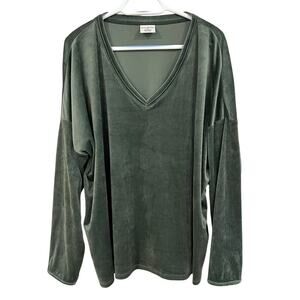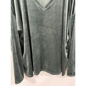 Wonderly Size 2X Ribbed Sage Green V-Neck Long Sleeve Top