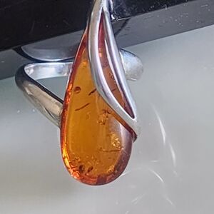 This elegant women's ring features a stunning amber stone set in a sleek sterling silver band. Perfect for adding a touch of sophistication to any outfit.
