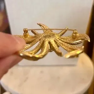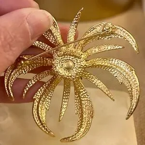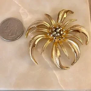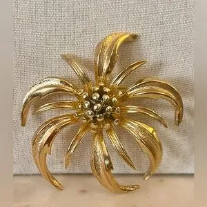 Sculptural Flower featuring shiny and textured Goldtone.