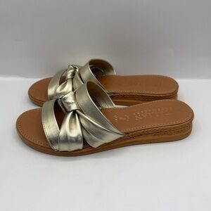 Italian Shoemakers Women 8.5 M Gold Metallic Braided Slides Sandals Italy Shoes