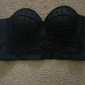 Gracia Black Peal Beaded Strapless Corset Bustier Supportive Coquette Goth Party Club Whimsigoth Top