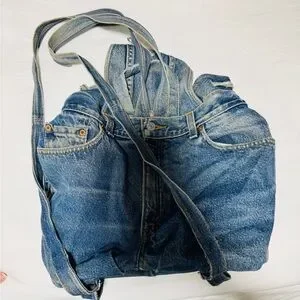 Levi's jeans backpack in classic blue. Features leather patch and signature stitching. Used!