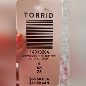 Torrid Gray Cardigan with Red and Purple Lip Print ☆ NEW☆