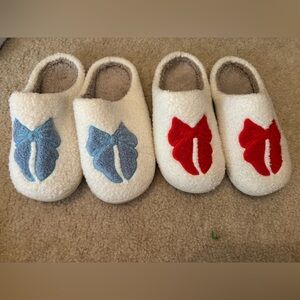 These adorable women’s slippers feature a soft, plush design with charming bow accents. Available in vibrant red and calming blue, they offer both comfort and style.