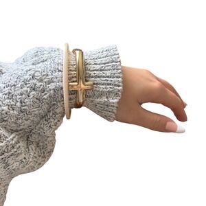 Gold Tone Oversized Cross Hinged Bangle Bracelet Chunky Statement Cuff