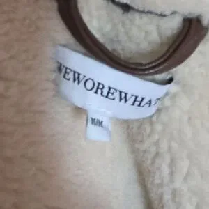 Like new weworewhat faux leather and sherpa jacket. This is a beautiful piece except it needs 3 new buttons. I recieved it in my bulk clothes order. It looks new but it is a heavy piece so im sure it was tried on at retail and 2 of the buttons are missing.