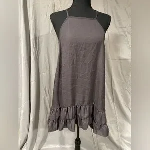 Stylish halter mini dress with ruffle hem. Perfect for casual outings.
