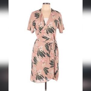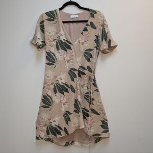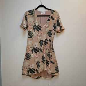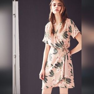 Chic wrap mini dress by Babaton. Features a floral pattern. Short sleeves and tie waist. Perfect for casual outings.