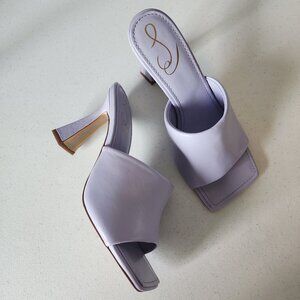 "NEW" Beautiful Misty Lilac/Purple Heeled Mules By Sam Edelman. Slip on Style, Leather Upper, Lining & Cushioned Footbed, Square Toe, Leather Wrapped 3.5" Flair Heel & Man Made Soles, New, Never Worn, Only Tried On:) Rt.110.00 approx. Size 7, Foot Bed Measures 9.1/4" for Reference. * Perfect Wedding Guest, Party, Easter, Event, Spring -Summer Shoe.