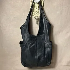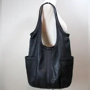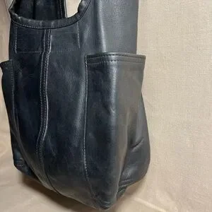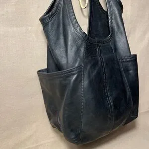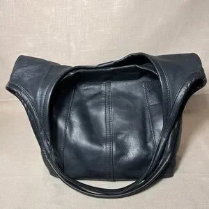 ROUGH & TUMBLE women’s envelope tote tumbled black leather hobo Large shopper