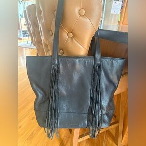 Lucky Brand Black Leather Tote Bag with Fringe