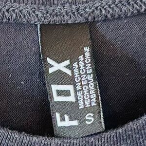 Sleek black tank top. Features bold white Fox logo. Perfect for casual wear.