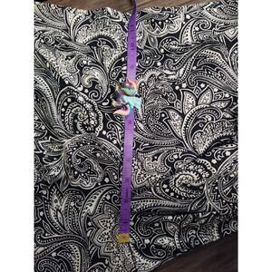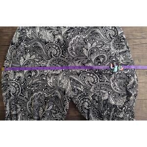 MICHAEL Michael Kors Pull on Pants Paisley Capri Stretchy Black White Large, in good pre-owned condition: no holes, no stains, minor wear, has been recently cleaned, may be stale from storage. Marked as a women's large, measurements are taken while laying flat and are approximate: (see photos)