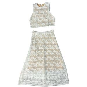 Pink Lemonade White Nude Palm Tree Pineapple Lace Crop Top Midi Skirt Set size M