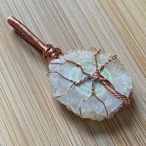 Elevate your style with this exquisite handcrafted Solar Quartz pendant, delicately wrapped in copper to form a stunning Tree of Life design. This unique piece is perfect for those who appreciate the beauty of nature-inspired jewelry.