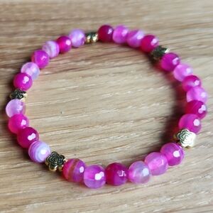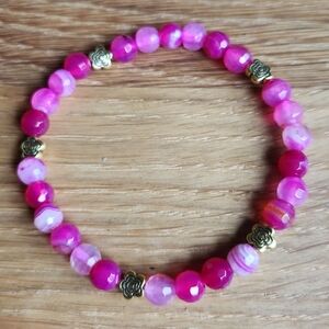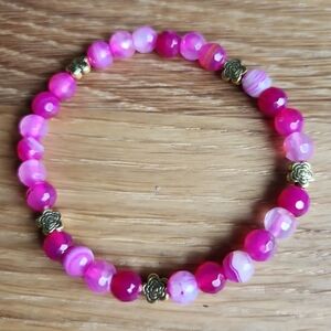 Pink Botswana Agate Beads Bracelet, Hand Crafted, Stretch