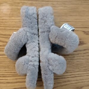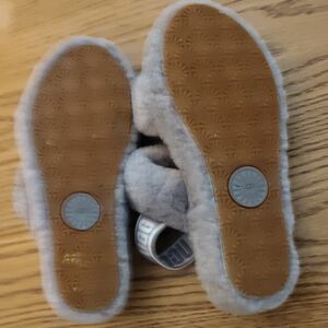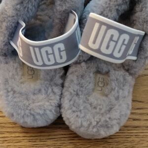 Luxurious and soft slippers. Fluffy texture with UGG logo strap. Perfect for cozy comfort.