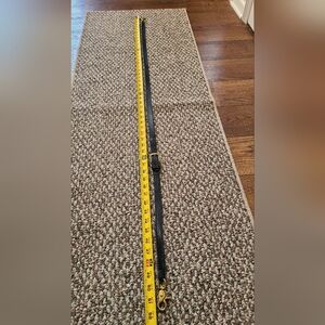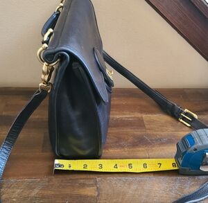 Great condition! Smooth black buttery soft leather with brass hardware. Some minor surface scuffs from age of bag and normal wear. Inside zipper pocket with signature brass pull tab which works smoothly. Brass turnlock works well too. Missing hang tag. Strap is a long one about 51.5" from one end of lobster claw to the other end. Has 4 adjustment notches. If I kept this bag I would have taken to a cobbler to professionally have a few more holes added to shorten for me, I'm 5'4". Since no grommets its a very easy inexpensive fix. Smokefree home.