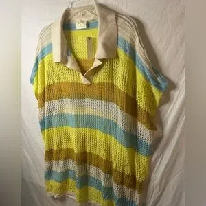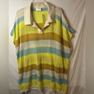 NWT Maeve Anthropologie Open Knit Polo Sweater One Size Striped Summer Layer