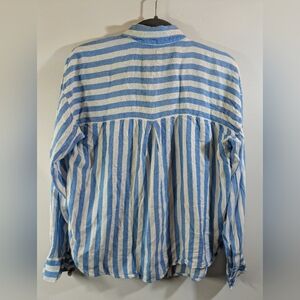 Hollister Blue & White Vertical Striped Oversized Button Down Shirt - S