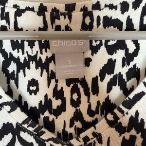 Chico’s Black White Animal Print 100% Pima Cotton V Neck Top Size 3 XL